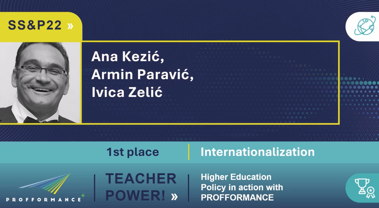 PROFFORMANCE je Međunarodna inicijativa usmjerena na unapređenje kvalitete nastave i poučavanja u visokom obrazovanju koja okuplja institucije zemalja Europske unije i regije. Nagrada prepoznaje nastavnu izvrsnost, inovativne pristupe i doprinos internacionalizaciji europskog prostora visokog obrazovanja. Prijave vrijednuju dva neovisna anonimana recenzenta sukladno propisanim pravlima poziva
