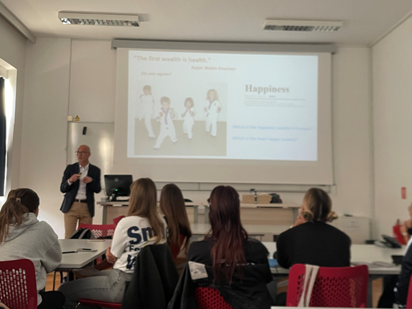 Predavanje je bilo namijenjeno studentima Fakulteta, a prof. Decelis je kroz inspirativno izlaganje i interaktivnos sudjelovanje studenata istaknuo važnost stvaranja i održavanja zdravih životnih navika te poticanja tjelesne aktivnosti tijekom cijelog života.