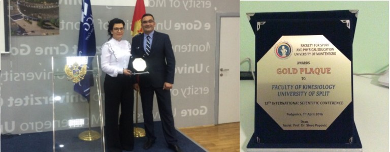 dodijeljeno na svečanoj ceremoniji otvaranja 13. Međunarodne znanstvene konferencije „Transformacijski procesi u sportu – sportska postignuća“.