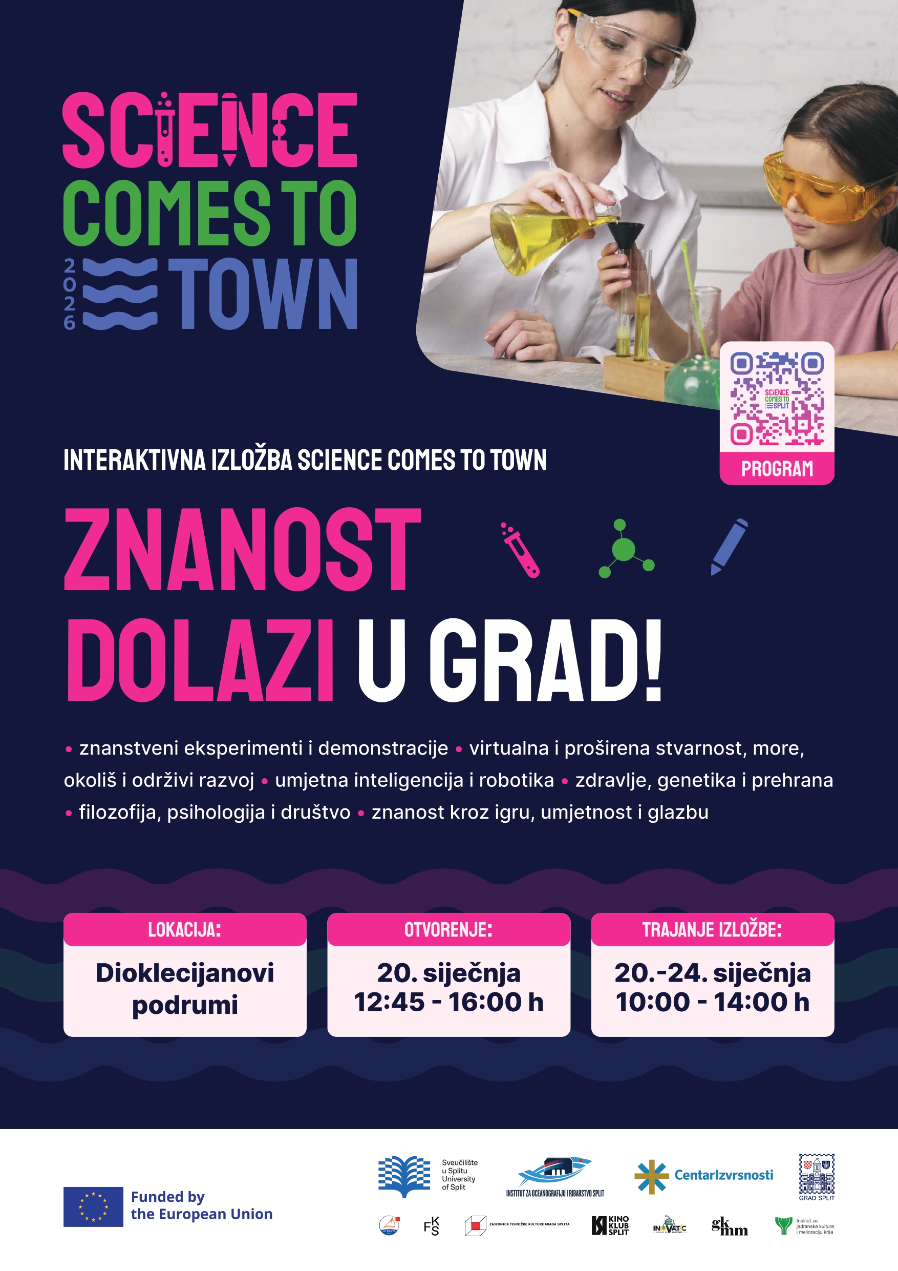Od utorka, 20. siječnja, do subote, 24. siječnja, povijesni Dioklecijanovi podrumi postaju središnje mjesto susreta znanosti, građana i grada. U sklopu europskog projekta Science Comes to Town, Split otvara interaktivnu javnu izložbu dostupnu svim građanima i posjetiteljima.